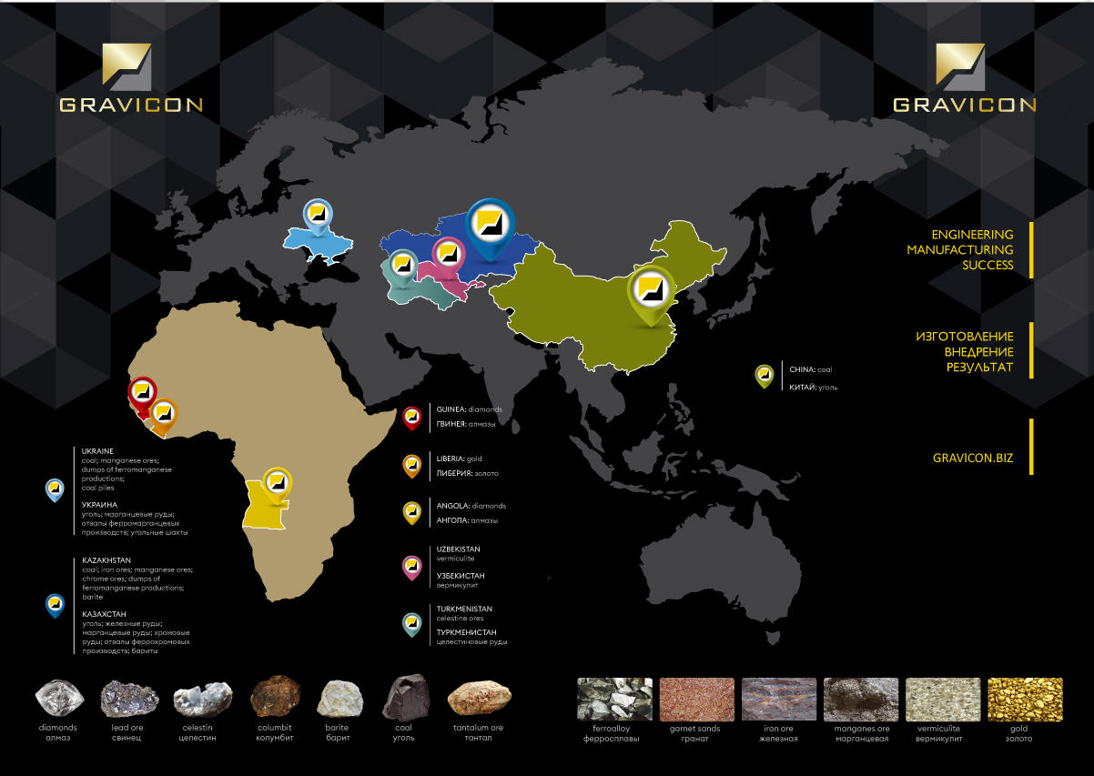 Employees of company GRAVICON-EU sp. z o.o have long experience of preparation of differentnatural resources by gravity method – from coal and ores of metals to diamonds and gold